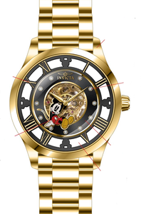 INVICTA Disney Limited Edition Men 45mm Stainless Steel Gold Black dial JSD-006ZJ Mechanical , Band Material: Stainless Steel, Band Tone: Gold, Band Size [mm]: 22, Band Length [mm]: 200, Buckle Type: Fold over safety , Crown Type : Push, Case Material : Stainless Steel, Case Tone : Gold, Case Size (mm) : 45, Case Back : Exhibition, Material of Hands : Metal, Color of Hands : Gold, Crystal Type : Flame Fusion, Bezel Material : Stainless Steel, Dial Material : Metal, Dial Color : Black, Dial Pattern : Sun-ray Finish .Purchasing these parts and having a non-authorized repair center open your watch voids all manufacturing warranties. Invicta cannot guarantee the quality standards of an altered timepiece, the standard 3-year limited warranty on Invicta timepieces shall be invalid if the timepiece is serviced at any time by an unauthorized repair center. This includes battery replacements, which must be done at an Invicta authorized repair center in order to maintain the eligibility of the warranty. Please follow the link below to learn more about Invicta's warranty.https://cdn.invictawatch.com/www/files/invicta-warranty-2018.pdf