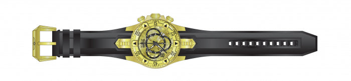Band for Invicta Excursion 24273, Band Material: Silicone, Stainless Steel, Band Color: Black, Gold, Band Size (in mm): 26, Band Length (in mm): 210, Buckle Type: Regular, Clasp Type: Regular. Please note that bands do not ship with spring bars or T bars. If you need these parts, please add them to your cart with the corresponding part sku.