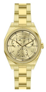 Band Material: Stainless Steel, Band Tone: Gold, Band Width: 18MM, Band Length: 165MM, Crown Type: Push, Case Material: Stainless Steel, Case Tone: Gold, Case Size [mm]: 38, Case Back: Solid, Material of Hands: Brass, Color of Hands: Gold, Crystal Type: Mineral, Bezel Material: Stainless Steel,Diamond, Dial Material: Mother of Pearl,Brass, Dial Color: Gold, Dial Pattern: Sun-ray Finish .Purchasing these parts and having a non-authorized repair center open your watch voids all manufacturing warranties. Invicta cannot guarantee the quality standards of an altered timepiece, the standard 3-year limited warranty on Invicta timepieces shall be invalid if the timepiece is serviced at any time by an unauthorized repair center. This includes battery replacements, which must be done at an Invicta authorized repair center in order to maintain the eligibility of the warranty. Please follow the link below to learn more about Invicta's warranty.https://cdn.invictawatch.com/www/files/invicta-warranty-2018.pdf