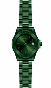 Band Material: Stainless Steel, Band Tone: Green, Band Size [mm]: 18, Band Length [mm]: 195, Buckle Type: Fold over safety . Please note that bands do not ship with spring bars or T bars. If you need these parts, please add them to your cart with the corresponding part sku.