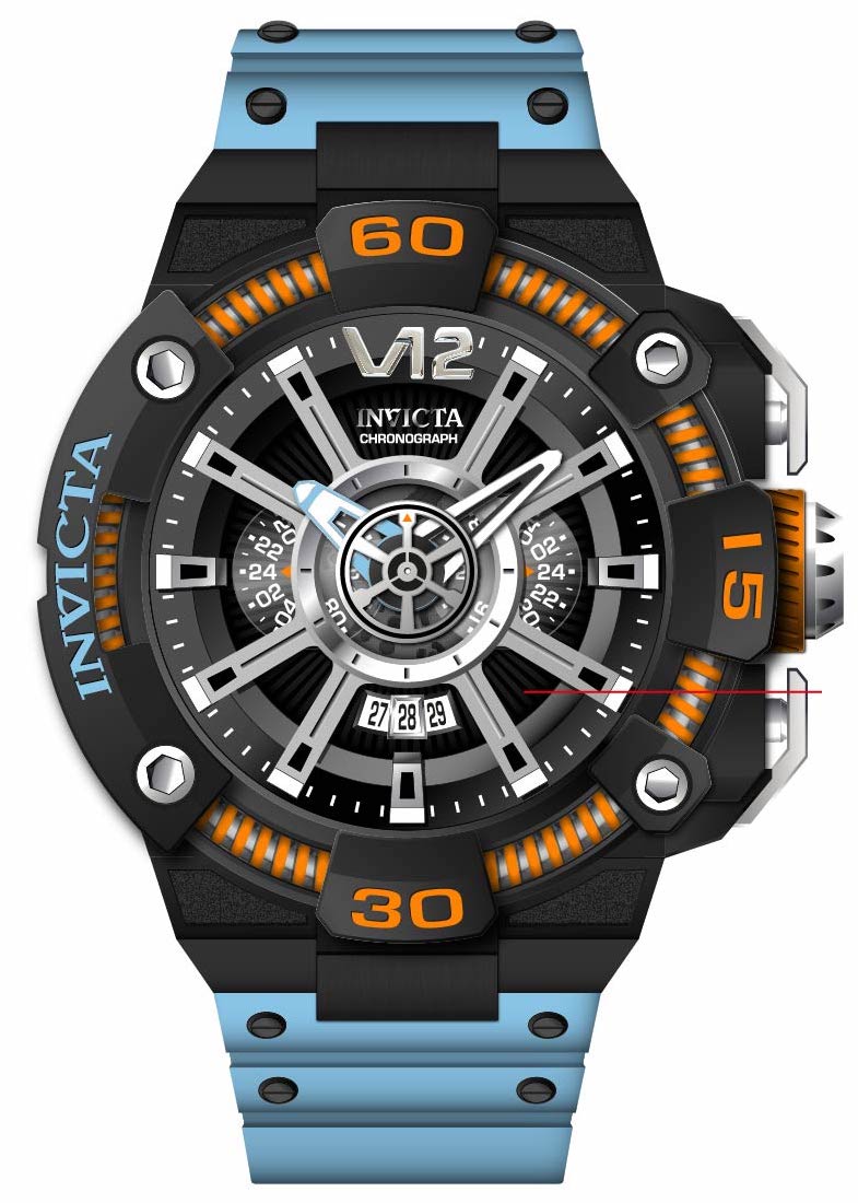 Band Material: Silicone, Band Tone: Black,Blue, Band Size [mm]: 32, Band Length [mm]: 210, Buckle Type: Buckle . Please note that bands do not ship with spring bars or T bars. If you need these parts, please add them to your cart with the corresponding part sku.