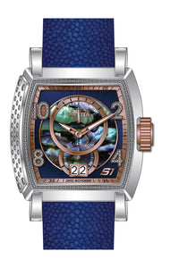 Band Material: Genuine Stingray, Band Tone: Blue, Band Size [mm]: 26, Band Length [mm]: 210, Buckle Type: Buckle . Please note that bands do not ship with spring bars or T bars. If you need these parts, please add them to your cart with the corresponding part sku.