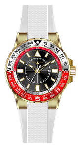 Band Material: Silicone, Band Tone: White, Band Width: 32MM, Band Length: 210MM, Crown Type: Push, Case Material: Stainless Steel, Case Tone: Gold, Case Size [mm]: 52, Case Back: Solid, Material of Hands: Brass, Color of Hands: White,Gold,Luminous, Crystal Type: Mineral, Bezel Material: Stainless Steel,Aluminum,Luminous, Dial Material: Brass, Dial Color: Black, Dial Pattern: Sun-ray Finish .Purchasing these parts and having a non-authorized repair center open your watch voids all manufacturing warranties. Invicta cannot guarantee the quality standards of an altered timepiece, the standard 3-year limited warranty on Invicta timepieces shall be invalid if the timepiece is serviced at any time by an unauthorized repair center. This includes battery replacements, which must be done at an Invicta authorized repair center in order to maintain the eligibility of the warranty. Please follow the link below to learn more about Invicta's warranty.https://cdn.invictawatch.com/www/files/invicta-warranty-2018.pdf