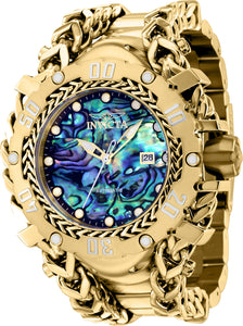 Band Material: Stainless Steel, Band Tone: Gold, Band Width: 41MM, Band Length: 210MM, Crown Type: Screw Down, Case Material: Stainless Steel, Case Tone: Gold, Case Size [mm]: 55.25, Color of Hands: Luminous, Gold, Crystal Type: Flame Fusion, Bezel Material: Stainless Steel, Dial Material: Abalone, Oyster, Metal, Dial Color: Green, Blue, Black .Purchasing these parts and having a non-authorized repair center open your watch voids all manufacturing warranties. Invicta cannot guarantee the quality standards of an altered timepiece, the standard 3-year limited warranty on Invicta timepieces shall be invalid if the timepiece is serviced at any time by an unauthorized repair center. This includes battery replacements, which must be done at an Invicta authorized repair center in order to maintain the eligibility of the warranty. Please follow the link below to learn more about Invicta's warranty.https://cdn.invictawatch.com/www/files/invicta-warranty-2018.pdf