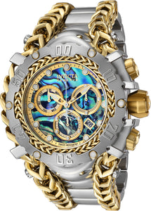 Band Material: Stainless Steel, Band Tone: Gold, Steel, Band Width: 41MM, Band Length: 210MM, Crown Type: Screw Down, Case Material: Stainless Steel, Case Tone: Steel, Gold, Case Size [mm]: 58.3, Color of Hands: Luminous, Gold, Crystal Type: Flame Fusion, Bezel Material: Stainless Steel, Dial Material: Abalone, Oyster, Metal, Dial Color: Green, Gold, Blue .Purchasing these parts and having a non-authorized repair center open your watch voids all manufacturing warranties. Invicta cannot guarantee the quality standards of an altered timepiece, the standard 3-year limited warranty on Invicta timepieces shall be invalid if the timepiece is serviced at any time by an unauthorized repair center. This includes battery replacements, which must be done at an Invicta authorized repair center in order to maintain the eligibility of the warranty. Please follow the link below to learn more about Invicta's warranty.https://cdn.invictawatch.com/www/files/invicta-warranty-2018.pdf