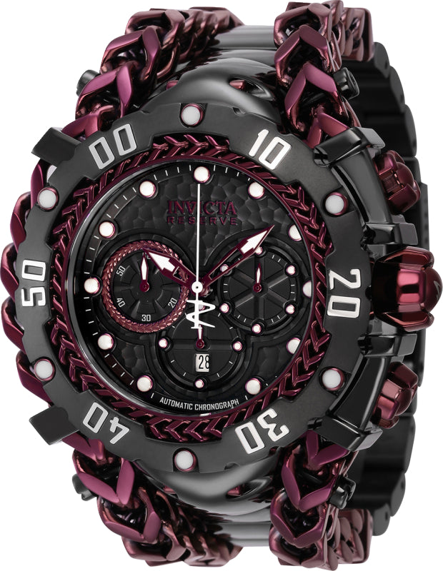 Band Material: Stainless Steel, Band Tone: Burgundy, Black, Band Width: 41MM, Band Length: 210MM, Crown Type: Screw Down, Case Material: Stainless Steel, Case Tone: Steel, Burgundy, Black, Case Size [mm]: 58.30, Color of Hands: Burgundy, Luminous, Crystal Type: Flame Fusion, Bezel Material: Stainless Steel, Dial Material: Metal, Dial Color: Burgundy, Black .Purchasing these parts and having a non-authorized repair center open your watch voids all manufacturing warranties. Invicta cannot guarantee the quality standards of an altered timepiece, the standard 3-year limited warranty on Invicta timepieces shall be invalid if the timepiece is serviced at any time by an unauthorized repair center. This includes battery replacements, which must be done at an Invicta authorized repair center in order to maintain the eligibility of the warranty. Please follow the link below to learn more about Invicta's warranty.https://cdn.invictawatch.com/www/files/invicta-warranty-2018.pdf