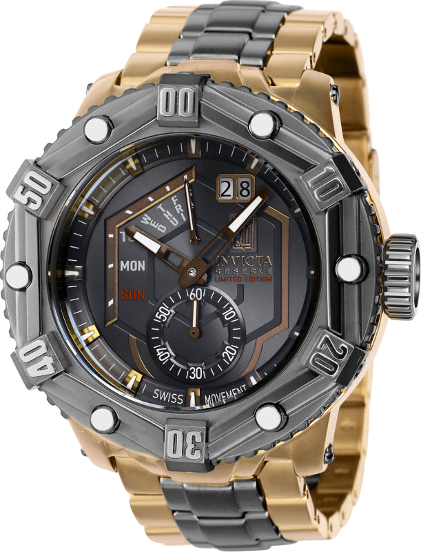 Band Material: Stainless Steel, Band Tone: Khaki, Titanium, Band Width: 26MM, Band Length: 210MM, Crown Type: Screw Down, Case Material: Stainless Steel, Case Tone: Steel, Khaki, Titanium, Case Size [mm]: 53.00, Color of Hands: Khaki, Luminous, Crystal Type: Flame Fusion, Bezel Material: Stainless Steel, Dial Material: Metal, Dial Color: Khaki, Gunmetal .Purchasing these parts and having a non-authorized repair center open your watch voids all manufacturing warranties. Invicta cannot guarantee the quality standards of an altered timepiece, the standard 3-year limited warranty on Invicta timepieces shall be invalid if the timepiece is serviced at any time by an unauthorized repair center. This includes battery replacements, which must be done at an Invicta authorized repair center in order to maintain the eligibility of the warranty. Please follow the link below to learn more about Invicta's warranty.https://cdn.invictawatch.com/www/files/invicta-warranty-2018.pdf