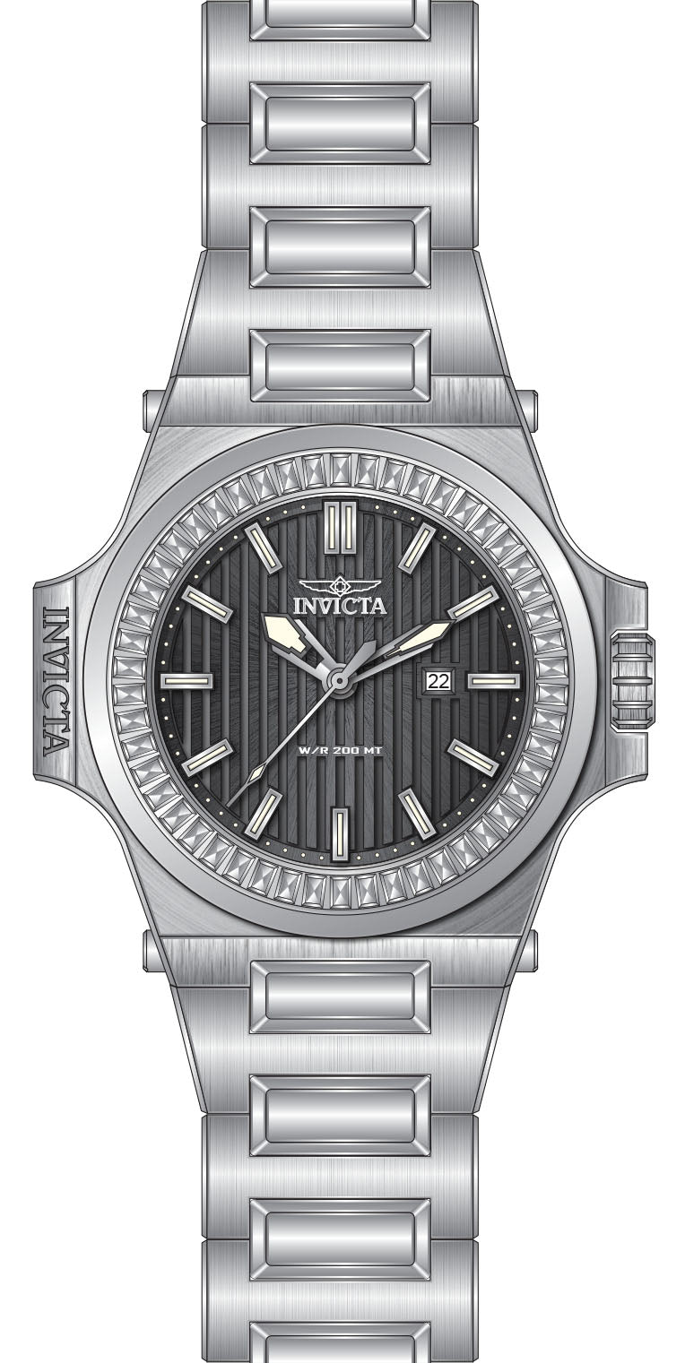 Band Material: Stainless Steel, Band Tone: Steel, Band Width: 32MM, Band Length: 210MM, Crown Type: Screw Down, Case Material: Stainless Steel,Crystal, Case Tone: Steel,Transparent White, Case Size [mm]: 58.00, Case Back: Solid screwed, Material of Hands: Metal, Color of Hands: Silver,Luminous,Gunmetal, Crystal Type: Mineral, Bezel Material: Stainless Steel,Crystal, Dial Material: Metal, Dial Color: Gunmetal, Dial Pattern: Textured Pattern .Purchasing these parts and having a non-authorized repair center open your watch voids all manufacturing warranties. Invicta cannot guarantee the quality standards of an altered timepiece, the standard 3-year limited warranty on Invicta timepieces shall be invalid if the timepiece is serviced at any time by an unauthorized repair center. This includes battery replacements, which must be done at an Invicta authorized repair center in order to maintain the eligibility of the warranty. Please follow the link below to learn more about Invicta's warranty.https://cdn.invictawatch.com/www/files/invicta-warranty-2018.pdf