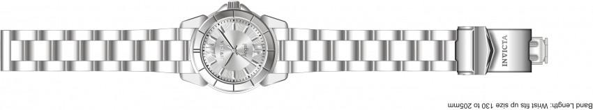 Individual Spare PARTS For Lady Invicta Angel 0457, Band Material Stainless Steel, Band Color Steel, Band Width 20 MM, Band Length 209 MM, Buckle Type Diver, Clasp Type Foldover, Safety Purchasing these parts and having a non-authorized repair center open your watch voids all manufacturing warranties. Invicta cannot guarantee the quality standards of an altered timepiece, the standard 3-year limited warranty on Invicta timepieces shall be invalid if the timepiece is serviced at any time by an unauthorized repair center. This includes battery replacements, which must be done at an Invicta authorized repair center in order to maintain the eligibility of the warranty. Please follow the link below to learn more about Invicta's warranty.https://cdn.invictawatch.com/www/files/invicta-warranty-2018.pdf