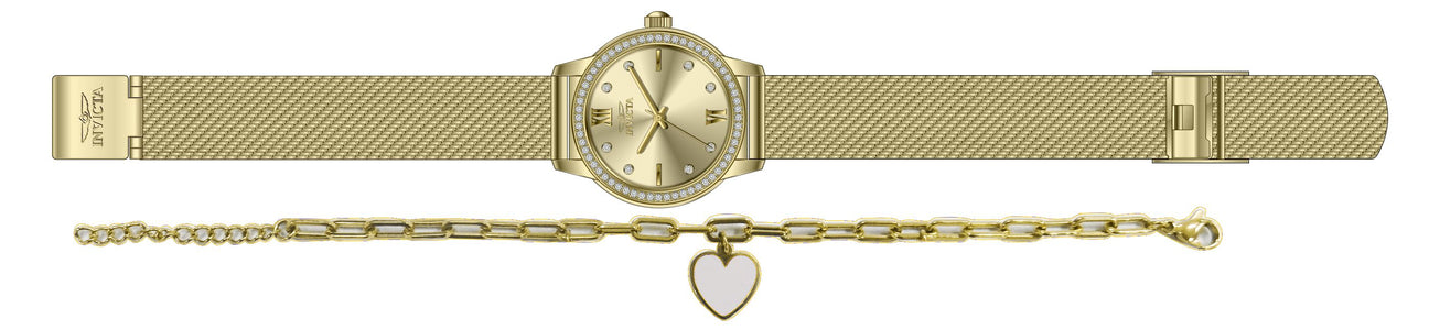 Band Material: Stainless Steel, Band Tone: Gold, Band Width: 14MM, Band Length: 192MM, Crown Type: Push, Case Material: Stainless Steel, Case Tone: Gold, Case Size [mm]: 30, Color of Hands: Gold, Crystal Type: Mineral, Bezel Material: None, Dial Material: Brass, Dial Color: Gold .Purchasing these parts and having a non-authorized repair center open your watch voids all manufacturing warranties. Invicta cannot guarantee the quality standards of an altered timepiece, the standard 3-year limited warranty on Invicta timepieces shall be invalid if the timepiece is serviced at any time by an unauthorized repair center. This includes battery replacements, which must be done at an Invicta authorized repair center in order to maintain the eligibility of the warranty. Please follow the link below to learn more about Invicta's warranty.https://cdn.invictawatch.com/www/files/invicta-warranty-2018.pdf