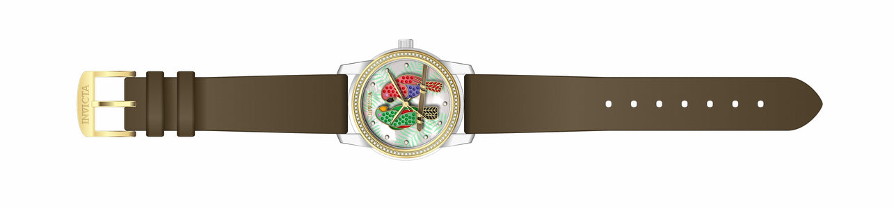 INVICTA Angel Lady 38mm Stainless Steel Gold + Steel White dial PC21J Quartz , Band Material: Satin, Band Tone: Brown, Band Size [mm]: 20, Band Length [mm]: 205, Buckle Type: Buckle , Crown Type : Push, Case Material : Stainless Steel, Case Tone : Gold,Steel, Case Size (mm) : 38, Case Back : Solid, Material of Hands : Metal, Color of Hands : Gold, Crystal Type : Flame Fusion, Bezel Material : Stainless Steel, Dial Material : Mother of Pearl, Dial Color : White, Dial Pattern : None .Purchasing these parts and having a non-authorized repair center open your watch voids all manufacturing warranties. Invicta cannot guarantee the quality standards of an altered timepiece, the standard 3-year limited warranty on Invicta timepieces shall be invalid if the timepiece is serviced at any time by an unauthorized repair center. This includes battery replacements, which must be done at an Invicta authorized repair center in order to maintain the eligibility of the warranty. Please follow the link below to learn more about Invicta's warranty.https://cdn.invictawatch.com/www/files/invicta-warranty-2018.pdf