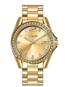 Band Material: Stainless Steel, Band Tone: Gold, Band Width: 18MM, Band Length: 175MM, Crown Type: Push, Case Material: Stainless Steel, Case Tone: Gold, Case Size [mm]: 38, Case Back: Solid, Material of Hands: Metal, Color of Hands: White,Gold, Crystal Type: Flame Fusion, Bezel Material: Stainless Steel, Dial Material: Metal, Dial Color: Gold, Dial Pattern: Sun-ray Finish .Purchasing these parts and having a non-authorized repair center open your watch voids all manufacturing warranties. Invicta cannot guarantee the quality standards of an altered timepiece, the standard 3-year limited warranty on Invicta timepieces shall be invalid if the timepiece is serviced at any time by an unauthorized repair center. This includes battery replacements, which must be done at an Invicta authorized repair center in order to maintain the eligibility of the warranty. Please follow the link below to learn more about Invicta's warranty.https://cdn.invictawatch.com/www/files/invicta-warranty-2018.pdf