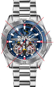 Band Material: Stainless Steel, Band Tone: Steel, Band Width: 26MM, Band Length: 197MM, Crown Type: Push, Case Material: Stainless Steel, Case Tone: Silver, Case Size [mm]: 51.5, Case Back: Exhibition, Material of Hands: Metal, Color of Hands: White,Red, Crystal Type: Flame Fusion, Bezel Material: Stainless Steel, Dial Material: Stainless Steel, Dial Color: Blue,Silver .Purchasing these parts and having a non-authorized repair center open your watch voids all manufacturing warranties. Invicta cannot guarantee the quality standards of an altered timepiece, the standard 3-year limited warranty on Invicta timepieces shall be invalid if the timepiece is serviced at any time by an unauthorized repair center. This includes battery replacements, which must be done at an Invicta authorized repair center in order to maintain the eligibility of the warranty. Please follow the link below to learn more about Invicta's warranty.https://cdn.invictawatch.com/www/files/invicta-warranty-2018.pdf