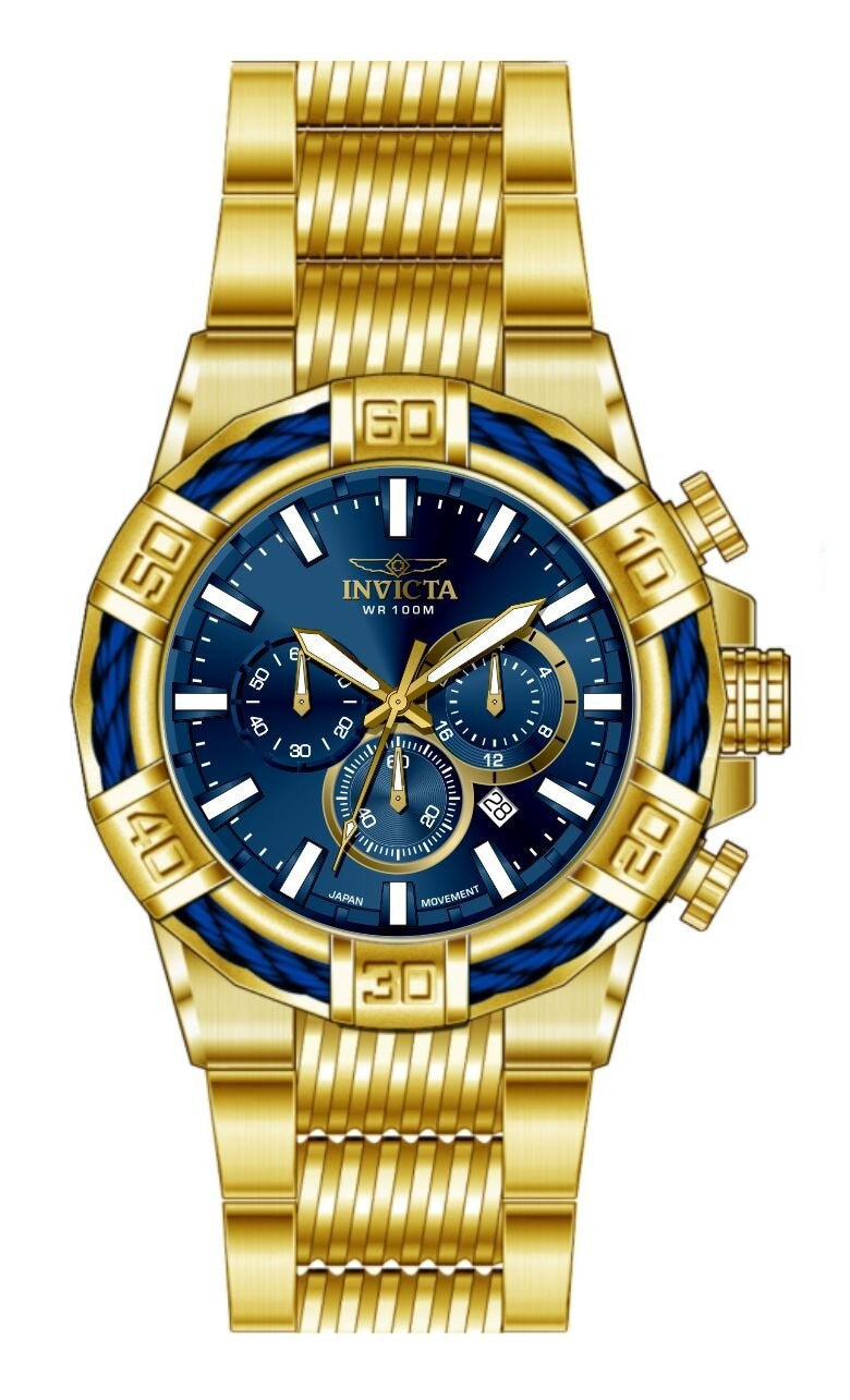 Band Material: Stainless Steel, Band Tone: Gold, Band Width: 30MM, Band Length: 193MM, Crown Type: Push, Case Material: Stainless Steel, Case Tone: Gold, Case Size [mm]: 51, Case Back: Solid, Material of Hands: Brass, Color of Hands: Gold,Luminous, Crystal Type: Mineral, Bezel Material: Stainless Steel,Cable, Dial Material: Brass, Dial Color: Blue, Dial Pattern: Sun-ray Finish .Purchasing these parts and having a non-authorized repair center open your watch voids all manufacturing warranties. Invicta cannot guarantee the quality standards of an altered timepiece, the standard 3-year limited warranty on Invicta timepieces shall be invalid if the timepiece is serviced at any time by an unauthorized repair center. This includes battery replacements, which must be done at an Invicta authorized repair center in order to maintain the eligibility of the warranty. Please follow the link below to learn more about Invicta's warranty.https://cdn.invictawatch.com/www/files/invicta-warranty-2018.pdf