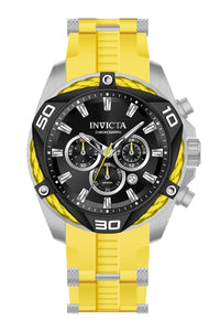 Band Material: Stainless Steel,Silicone, Band Tone: Steel,Yellow, Band Width: 26MM, Band Length: 210MM, Crown Type: Push, Case Material: Stainless Steel, Case Tone: Steel, Case Size [mm]: 50, Case Back: Solid, Material of Hands: Metal, Color of Hands: Silver,Yellow,Luminous, Crystal Type: Mineral, Bezel Material: Stainless Steel,Cable, Dial Material: Metal, Dial Color: Black, Dial Pattern: Sun-ray Finish .Purchasing these parts and having a non-authorized repair center open your watch voids all manufacturing warranties. Invicta cannot guarantee the quality standards of an altered timepiece, the standard 3-year limited warranty on Invicta timepieces shall be invalid if the timepiece is serviced at any time by an unauthorized repair center. This includes battery replacements, which must be done at an Invicta authorized repair center in order to maintain the eligibility of the warranty. Please follow the link below to learn more about Invicta's warranty.https://cdn.invictawatch.com/www/files/invicta-warranty-2018.pdf