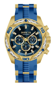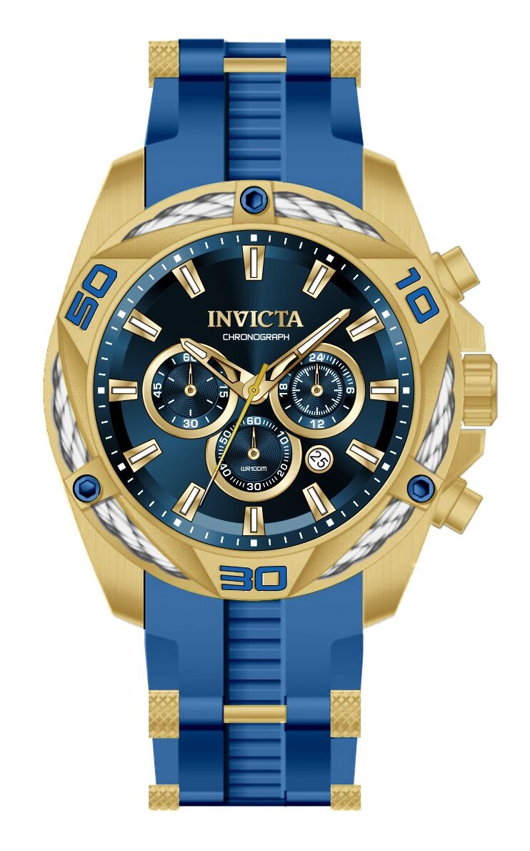 Band Material: Stainless Steel,Silicone, Band Tone: Gold,Blue, Band Width: 26MM, Band Length: 210MM, Crown Type: Push, Case Material: Stainless Steel, Case Tone: Gold, Case Size [mm]: 50, Case Back: Solid, Material of Hands: Metal, Color of Hands: Gold,Luminous, Crystal Type: Mineral, Bezel Material: Stainless Steel,Cable, Dial Material: Metal, Dial Color: Blue, Dial Pattern: Sun-ray Finish .Purchasing these parts and having a non-authorized repair center open your watch voids all manufacturing warranties. Invicta cannot guarantee the quality standards of an altered timepiece, the standard 3-year limited warranty on Invicta timepieces shall be invalid if the timepiece is serviced at any time by an unauthorized repair center. This includes battery replacements, which must be done at an Invicta authorized repair center in order to maintain the eligibility of the warranty. Please follow the link below to learn more about Invicta's warranty.https://cdn.invictawatch.com/www/files/invicta-warranty-2018.pdf