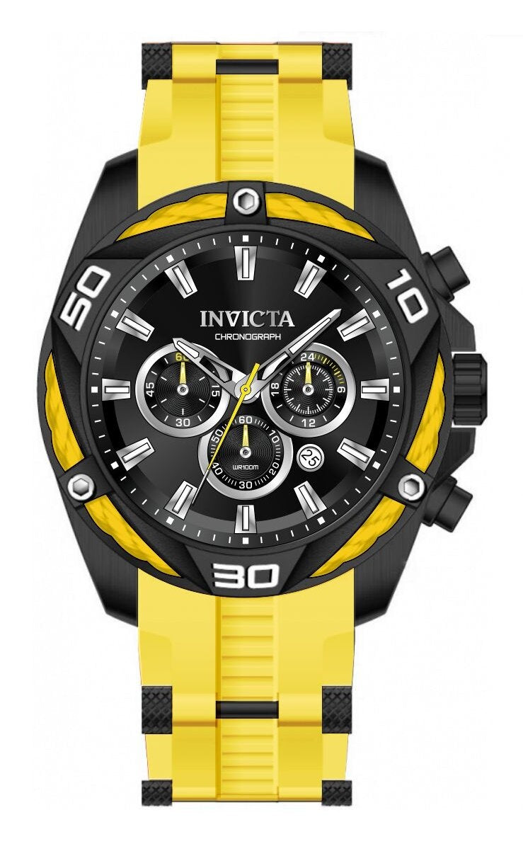 Band Material: Stainless Steel,Silicone, Band Tone: Black,Yellow, Band Width: 26MM, Band Length: 210MM, Crown Type: Push, Case Material: Stainless Steel, Case Tone: Black, Case Size [mm]: 50, Case Back: Solid, Material of Hands: Metal, Color of Hands: Silver,Yellow,Luminous, Crystal Type: Mineral, Bezel Material: Stainless Steel,Cable, Dial Material: Metal, Dial Color: Black, Dial Pattern: Sun-ray Finish .Purchasing these parts and having a non-authorized repair center open your watch voids all manufacturing warranties. Invicta cannot guarantee the quality standards of an altered timepiece, the standard 3-year limited warranty on Invicta timepieces shall be invalid if the timepiece is serviced at any time by an unauthorized repair center. This includes battery replacements, which must be done at an Invicta authorized repair center in order to maintain the eligibility of the warranty. Please follow the link below to learn more about Invicta's warranty.https://cdn.invictawatch.com/www/files/invicta-warranty-2018.pdf