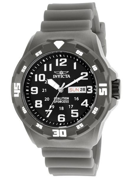 Individual Spare PARTS For Invicta Coalition Forces 25325, Band Material Silicone, Band Color Grey, Band Width 24 MM, Band Length 215 MM, Buckle Type Buckle, Clasp Type Buckle, Crown Type Push, Case Material ABS, Case Tone Grey, Case Size (mm) 45, Case Back Solid, Material of Hands Metal, Color of Hands Silver, Crystal Type Flame Fusion, Bezel Material ABS, Dial Material Metal, Dial Color Black, Dial Pattern SunrayPurchasing these parts and having a non-authorized repair center open your watch voids all manufacturing warranties. Invicta cannot guarantee the quality standards of an altered timepiece, the standard 3-year limited warranty on Invicta timepieces shall be invalid if the timepiece is serviced at any time by an unauthorized repair center. This includes battery replacements, which must be done at an Invicta authorized repair center in order to maintain the eligibility of the warranty. Please follow the link below to learn more about Invicta's warranty.https://cdn.invictawatch.com/www/files/invicta-warranty-2018.pdf