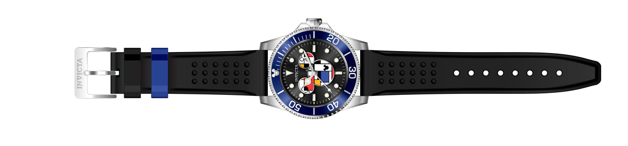 INVICTA Disney Limited Edition Men 44mm Stainless Steel Steel Black dial PC21J Quartz , Band Material: Silicone, Band Tone: Black,Blue, Band Size [mm]: 22, Band Length [mm]: 195, Buckle Type: Buckle , Crown Type : Push, Case Material : Stainless Steel, Case Tone : Steel, Case Size (mm) : 44, Case Back : Solid, Material of Hands : Metal, Color of Hands : Silver,Luminous, Crystal Type : Mineral, Bezel Material : Stainless Steel, Dial Material : Metal, Dial Color : Black, Dial Pattern : Sun-ray Finish .Purchasing these parts and having a non-authorized repair center open your watch voids all manufacturing warranties. Invicta cannot guarantee the quality standards of an altered timepiece, the standard 3-year limited warranty on Invicta timepieces shall be invalid if the timepiece is serviced at any time by an unauthorized repair center. This includes battery replacements, which must be done at an Invicta authorized repair center in order to maintain the eligibility of the warranty. Please follow the link below to learn more about Invicta's warranty.https://cdn.invictawatch.com/www/files/invicta-warranty-2018.pdf