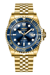 INVICTA Pro Diver Men 43mm Stainless Steel Gold Blue dial PC32 Quartz , Band Material: Stainless Steel, Band Tone: Gold, Band Size [mm]: 22, Band Length [mm]: 185, Buckle Type: Fold over safety , Crown Type : Push, Case Material : Stainless Steel, Case Tone : Gold, Case Size (mm) : 43, Case Back : Solid, Material of Hands : Metal, Color of Hands : Gold, Crystal Type : Flame Fusion, Bezel Material : Stainless Steel, Dial Material : Metal, Dial Color : Blue, Dial Pattern : Sun-ray Finish .Purchasing these parts and having a non-authorized repair center open your watch voids all manufacturing warranties. Invicta cannot guarantee the quality standards of an altered timepiece, the standard 3-year limited warranty on Invicta timepieces shall be invalid if the timepiece is serviced at any time by an unauthorized repair center. This includes battery replacements, which must be done at an Invicta authorized repair center in order to maintain the eligibility of the warranty. Please follow the link below to learn more about Invicta's warranty.https://cdn.invictawatch.com/www/files/invicta-warranty-2018.pdf