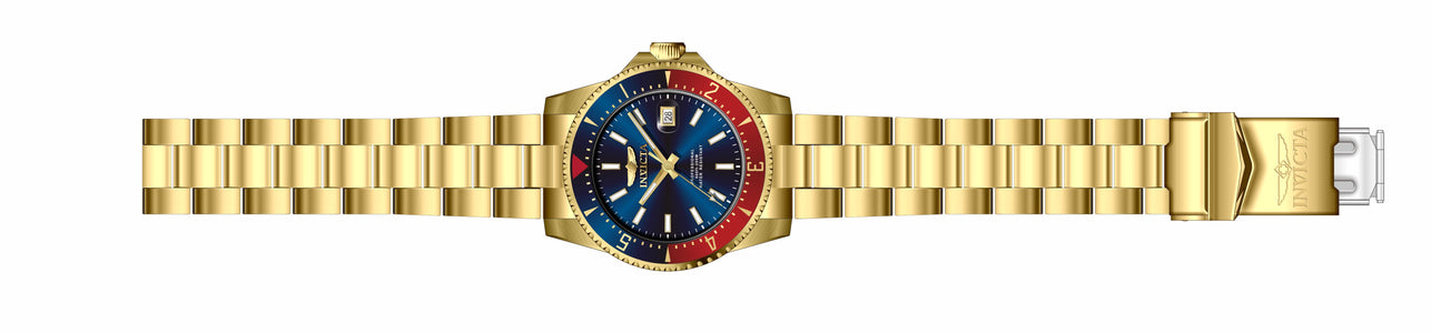 INVICTA Pro Diver Men 44mm Stainless Steel Gold Blue dial NH35A Automatic , Band Material: Stainless Steel, Band Tone: Gold, Band Size [mm]: 22, Band Length [mm]: 210, Buckle Type: Fold over safety , Crown Type : Screw Down, Case Material : Stainless Steel, Case Tone : Gold, Case Size (mm) : 44, Case Back : Exhibition, Material of Hands : Metal, Color of Hands : Gold,Luminous, Crystal Type : Mineral, Bezel Material : Stainless Steel, Dial Material : Metal, Dial Color : Blue, Dial Pattern : Sun-ray Finish .Purchasing these parts and having a non-authorized repair center open your watch voids all manufacturing warranties. Invicta cannot guarantee the quality standards of an altered timepiece, the standard 3-year limited warranty on Invicta timepieces shall be invalid if the timepiece is serviced at any time by an unauthorized repair center. This includes battery replacements, which must be done at an Invicta authorized repair center in order to maintain the eligibility of the warranty. Please follow the link below to learn more about Invicta's warranty.https://cdn.invictawatch.com/www/files/invicta-warranty-2018.pdf