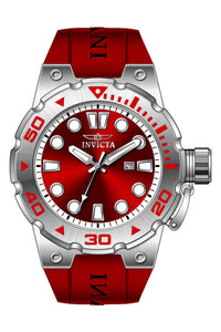 INVICTA Pro Diver Men 51mm Stainless Steel Steel Red dial PC32 Quartz , Band Material: Silicone, Band Tone: Red, Band Size [mm]: 32, Band Length [mm]: 215, Buckle Type: Buckle , Crown Type : Screw Down, Case Material : Stainless Steel, Case Tone : Steel, Case Size (mm) : 51, Case Back : Solid, Material of Hands : Metal, Color of Hands : White,Silver, Crystal Type : Flame Fusion, Bezel Material : Stainless Steel, Dial Material : Metal, Dial Color : Red, Dial Pattern : Sun-ray Finish .Purchasing these parts and having a non-authorized repair center open your watch voids all manufacturing warranties. Invicta cannot guarantee the quality standards of an altered timepiece, the standard 3-year limited warranty on Invicta timepieces shall be invalid if the timepiece is serviced at any time by an unauthorized repair center. This includes battery replacements, which must be done at an Invicta authorized repair center in order to maintain the eligibility of the warranty. Please follow the link below to learn more about Invicta's warranty.https://cdn.invictawatch.com/www/files/invicta-warranty-2018.pdf