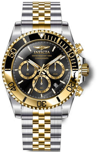 Band Material: Stainless Steel, Band Tone: Steel,Gold, Band Width: 22MM, Band Length: 210MM, Crown Type: Screw Down, Case Material: Stainless Steel, Case Tone: Steel, Case Size [mm]: 43, Case Back: Solid, Material of Hands: Metal, Color of Hands: White,Gold, Crystal Type: Flame Fusion, Bezel Material: Stainless Steel,Aluminum, Dial Material: Metal, Dial Color: Black .Purchasing these parts and having a non-authorized repair center open your watch voids all manufacturing warranties. Invicta cannot guarantee the quality standards of an altered timepiece, the standard 3-year limited warranty on Invicta timepieces shall be invalid if the timepiece is serviced at any time by an unauthorized repair center. This includes battery replacements, which must be done at an Invicta authorized repair center in order to maintain the eligibility of the warranty. Please follow the link below to learn more about Invicta's warranty.https://cdn.invictawatch.com/www/files/invicta-warranty-2018.pdf