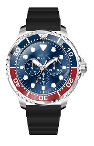 Band Material: Silicone, Band Tone: Black, Band Width: 22MM, Band Length: 218MM, Crown Type: Push, Case Material: Stainless Steel, Case Tone: Steel, Case Size [mm]: 48, Crystal Type: Flame Fusion, Dial Material: Brass, Dial Color: Blue .Purchasing these parts and having a non-authorized repair center open your watch voids all manufacturing warranties. Invicta cannot guarantee the quality standards of an altered timepiece, the standard 3-year limited warranty on Invicta timepieces shall be invalid if the timepiece is serviced at any time by an unauthorized repair center. This includes battery replacements, which must be done at an Invicta authorized repair center in order to maintain the eligibility of the warranty. Please follow the link below to learn more about Invicta's warranty.https://cdn.invictawatch.com/www/files/invicta-warranty-2018.pdf