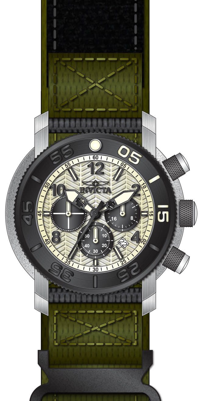 Band Material: Nylon, Band Tone: Black,Orange,Green, Band Width: 26.00MM, Band Length: 185MM, Crown Type: Push, Case Material: Stainless Steel, Case Tone: Black,Steel, Case Size [mm]: 50.00, Case Back: Solid screwed, Material of Hands: Metal, Color of Hands: Luminous,Gunmetal, Crystal Type: Mineral, Bezel Material: Stainless Steel, Dial Material: Metal, Dial Color: Black,Champagne, Dial Pattern: Textured Pattern .Purchasing these parts and having a non-authorized repair center open your watch voids all manufacturing warranties. Invicta cannot guarantee the quality standards of an altered timepiece, the standard 3-year limited warranty on Invicta timepieces shall be invalid if the timepiece is serviced at any time by an unauthorized repair center. This includes battery replacements, which must be done at an Invicta authorized repair center in order to maintain the eligibility of the warranty. Please follow the link below to learn more about Invicta's warranty.https://cdn.invictawatch.com/www/files/invicta-warranty-2018.pdf