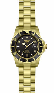 INVICTA Pro Diver Men 43mm Stainless Steel Gold Black dial NH35A Automatic , Band Material: Stainless Steel, Band Tone: Gold, Band Size [mm]: 22, Band Length [mm]: 210, Buckle Type: Fold over safety , Crown Type : Screw Down, Case Material : Stainless Steel, Case Tone : Gold, Case Size (mm) : 43, Case Back : Exhibition, Material of Hands : Metal, Color of Hands : Gold,Luminous, Crystal Type : Mineral, Bezel Material : Stainless Steel, Dial Material : Metal, Dial Color : Black, Dial Pattern : None .Purchasing these parts and having a non-authorized repair center open your watch voids all manufacturing warranties. Invicta cannot guarantee the quality standards of an altered timepiece, the standard 3-year limited warranty on Invicta timepieces shall be invalid if the timepiece is serviced at any time by an unauthorized repair center. This includes battery replacements, which must be done at an Invicta authorized repair center in order to maintain the eligibility of the warranty. Please follow the link below to learn more about Invicta's warranty.https://cdn.invictawatch.com/www/files/invicta-warranty-2018.pdf