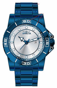 INVICTA Pro Diver Men 48mm Stainless Steel Blue Silver dial PC32 Quartz , Band Material: Stainless Steel, Band Tone: Blue, Band Size [mm]: 24, Band Length [mm]: 190, Buckle Type: Fold over safety , Crown Type : Push, Case Material : Stainless Steel, Case Tone : Blue, Case Size (mm) : 48, Case Back : Solid, Material of Hands : Metal, Color of Hands : White,Blue, Crystal Type : Flame Fusion, Bezel Material : Stainless Steel, Dial Material : Metal, Dial Color : Silver, Dial Pattern : Sun-ray Finish .Purchasing these parts and having a non-authorized repair center open your watch voids all manufacturing warranties. Invicta cannot guarantee the quality standards of an altered timepiece, the standard 3-year limited warranty on Invicta timepieces shall be invalid if the timepiece is serviced at any time by an unauthorized repair center. This includes battery replacements, which must be done at an Invicta authorized repair center in order to maintain the eligibility of the warranty. Please follow the link below to learn more about Invicta's warranty.https://cdn.invictawatch.com/www/files/invicta-warranty-2018.pdf