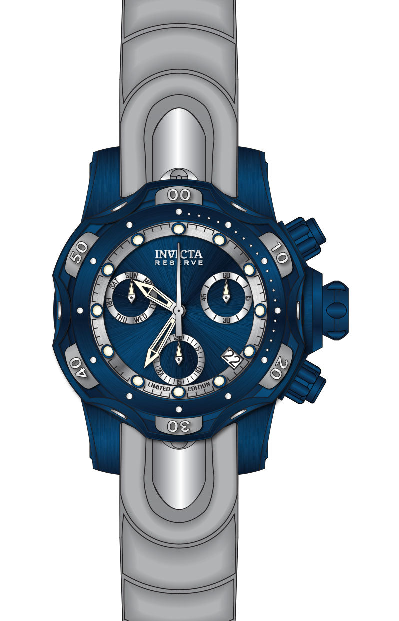 Band Material: Stainless Steel,Silicone,Aluminium, Band Tone: Steel,Grey, Band Width: 20MM, Band Length: 185MM, Crown Type: Screw Down, Case Material: Stainless Steel,Aluminum, Case Tone: Grey,Silver,Dark Blue,Steel, Case Size [mm]: 44.40, Case Back: Solid, Material of Hands: Metal, Color of Hands: Silver,Luminous, Crystal Type: Flame Fusion, Bezel Material: Stainless Steel,Aluminum, Dial Material: Metal, Dial Color: Blue,Silver, Dial Pattern: Sun-ray Finish .Purchasing these parts and having a non-authorized repair center open your watch voids all manufacturing warranties. Invicta cannot guarantee the quality standards of an altered timepiece, the standard 3-year limited warranty on Invicta timepieces shall be invalid if the timepiece is serviced at any time by an unauthorized repair center. This includes battery replacements, which must be done at an Invicta authorized repair center in order to maintain the eligibility of the warranty. Please follow the link below to learn more about Invicta's warranty.https://cdn.invictawatch.com/www/files/invicta-warranty-2018.pdf
