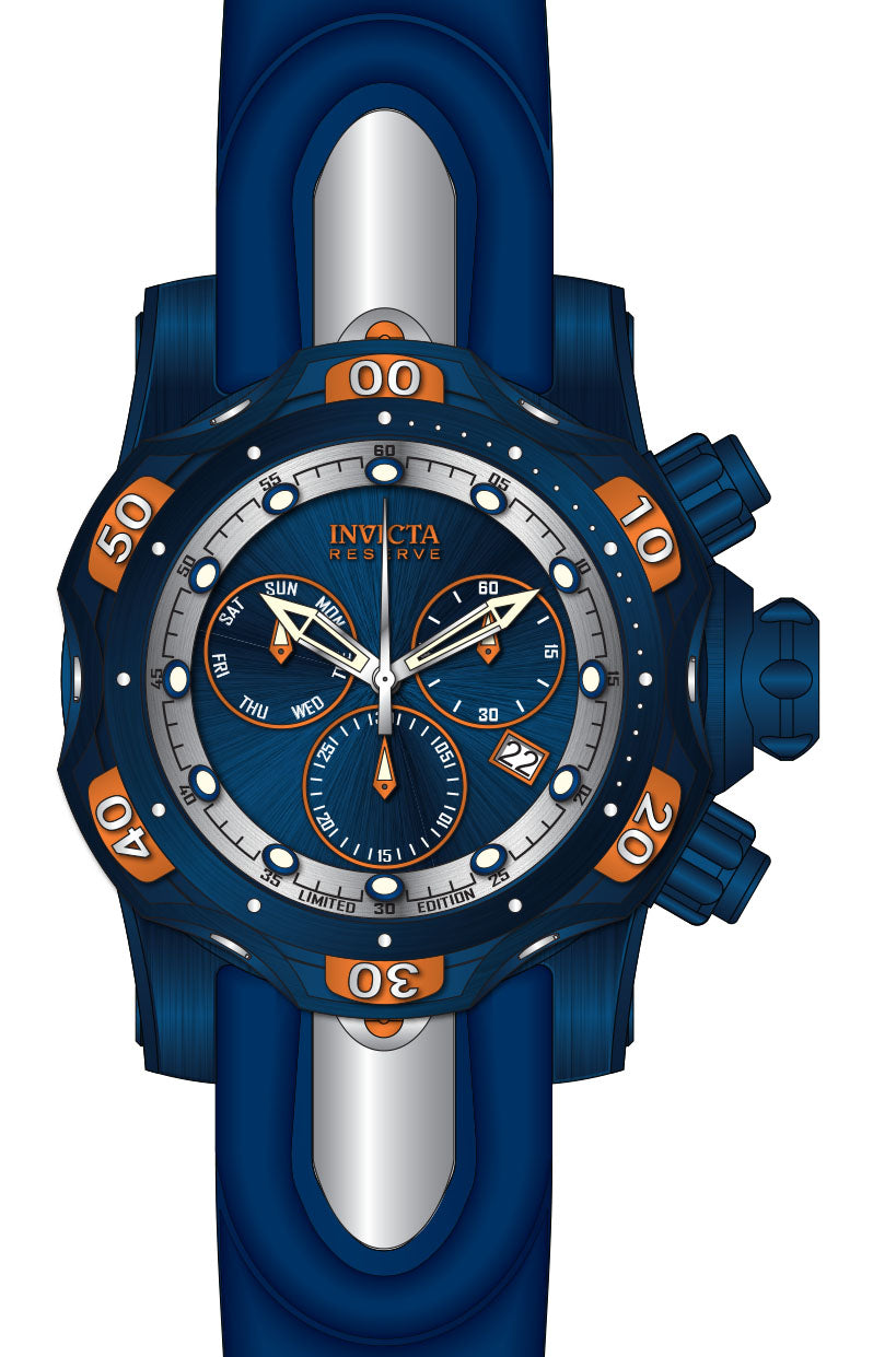 Band Material: Stainless Steel,Silicone,Aluminium, Band Tone: Steel,Blue,Orange, Band Width: 26MM, Band Length: 210MM, Crown Type: Screw Down, Case Material: Stainless Steel,Aluminum, Case Tone: Orange,Silver,Dark Blue,Steel, Case Size [mm]: 52.5, Case Back: Solid, Material of Hands: Metal, Color of Hands: Silver,Orange,Luminous, Crystal Type: Flame Fusion, Bezel Material: Stainless Steel,Aluminum, Dial Material: Metal, Dial Color: Blue,Silver,Orange, Dial Pattern: Sun-ray Finish .Purchasing these parts and having a non-authorized repair center open your watch voids all manufacturing warranties. Invicta cannot guarantee the quality standards of an altered timepiece, the standard 3-year limited warranty on Invicta timepieces shall be invalid if the timepiece is serviced at any time by an unauthorized repair center. This includes battery replacements, which must be done at an Invicta authorized repair center in order to maintain the eligibility of the warranty. Please follow the link below to learn more about Invicta's warranty.https://cdn.invictawatch.com/www/files/invicta-warranty-2018.pdf