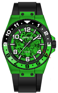 Band Material: Stainless Steel, Band Tone: Black, Band Width: 30MM, Band Length: 210MM, Buckle Type: Buckle, Crown Type : Push, Case Material : Polyurethane, Case Tone : Green, Case Size [mm] : 48, Case Back : Exhibition, Material of Hands : Metal, Color of Hands : Black,White, Crystal Type : Flame Fusion, Bezel Material : Stainless Steel, Dial Material : Stainless Steel, Dial Color : Green, Dial Pattern : Sun-ray Finish .Purchasing these parts and having a non-authorized repair center open your watch voids all manufacturing warranties. Invicta cannot guarantee the quality standards of an altered timepiece, the standard 3-year limited warranty on Invicta timepieces shall be invalid if the timepiece is serviced at any time by an unauthorized repair center. This includes battery replacements, which must be done at an Invicta authorized repair center in order to maintain the eligibility of the warranty. Please follow the link below to learn more about Invicta's warranty.https://cdn.invictawatch.com/www/files/invicta-warranty-2018.pdf