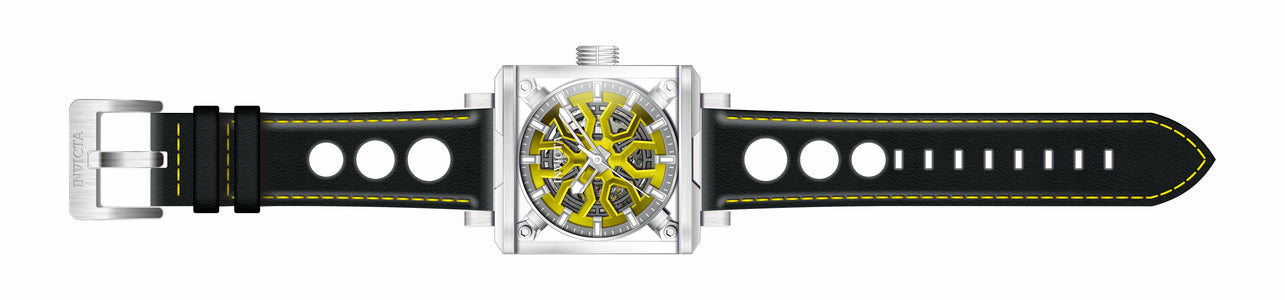 Band Material: Leather, Band Tone: Black, Band Width: 24MM, Band Length: 205MM, Crown Type: Push, Case Material: Stainless Steel, Case Tone: Steel, Case Size [mm]: 44, Case Back: Exhibition, Material of Hands: Metal, Color of Hands: Silver,Luminous, Crystal Type: Flame Fusion, Dial Material: Metal, Dial Color: Grey,Yellow, Dial Pattern: Skeleton Design .Purchasing these parts and having a non-authorized repair center open your watch voids all manufacturing warranties. Invicta cannot guarantee the quality standards of an altered timepiece, the standard 3-year limited warranty on Invicta timepieces shall be invalid if the timepiece is serviced at any time by an unauthorized repair center. This includes battery replacements, which must be done at an Invicta authorized repair center in order to maintain the eligibility of the warranty. Please follow the link below to learn more about Invicta's warranty.https://cdn.invictawatch.com/www/files/invicta-warranty-2018.pdf