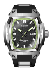 Band Material: Stainless Steel,Silicone, Band Tone: Steel,Black, Band Width: 31MM, Band Length: 210MM, Crown Type: Push, Case Material: Stainless Steel,Aluminum, Case Tone: Black,Steel, Case Size [mm]: 53, Case Back: Solid, Material of Hands: Metal, Color of Hands: Black,Green, Crystal Type: Flame Fusion, Bezel Material: Stainless Steel, Dial Material: Metal, Dial Color: Black, Dial Pattern: Sandblast Finish .Purchasing these parts and having a non-authorized repair center open your watch voids all manufacturing warranties. Invicta cannot guarantee the quality standards of an altered timepiece, the standard 3-year limited warranty on Invicta timepieces shall be invalid if the timepiece is serviced at any time by an unauthorized repair center. This includes battery replacements, which must be done at an Invicta authorized repair center in order to maintain the eligibility of the warranty. Please follow the link below to learn more about Invicta's warranty.https://cdn.invictawatch.com/www/files/invicta-warranty-2018.pdf