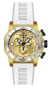 Band Material: Silicone, Band Tone: White, Band Width: 28MM, Band Length: 220MM, Crown Type: Screw Down, Case Material: Stainless Steel, Case Tone: Gold,Steel, Case Size [mm]: 52, Case Back: Solid, Material of Hands: Brass, Color of Hands: Black,Luminous, Crystal Type: Mineral, Bezel Material: Stainless Steel, Dial Material: Brass, Dial Color: Gold, Dial Pattern: Sun-ray Finish .Purchasing these parts and having a non-authorized repair center open your watch voids all manufacturing warranties. Invicta cannot guarantee the quality standards of an altered timepiece, the standard 3-year limited warranty on Invicta timepieces shall be invalid if the timepiece is serviced at any time by an unauthorized repair center. This includes battery replacements, which must be done at an Invicta authorized repair center in order to maintain the eligibility of the warranty. Please follow the link below to learn more about Invicta's warranty.https://cdn.invictawatch.com/www/files/invicta-warranty-2018.pdf
