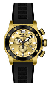 Band Material: Silicone, Band Tone: Black, Band Width: 28MM, Band Length: 220MM, Crown Type: Screw Down, Case Material: Stainless Steel, Case Tone: Gold,Black, Case Size [mm]: 52, Case Back: Solid, Material of Hands: Brass, Color of Hands: Black,Red,Luminous, Crystal Type: Mineral, Bezel Material: Stainless Steel, Dial Material: Brass, Dial Color: Gold, Dial Pattern: Sun-ray Finish .Purchasing these parts and having a non-authorized repair center open your watch voids all manufacturing warranties. Invicta cannot guarantee the quality standards of an altered timepiece, the standard 3-year limited warranty on Invicta timepieces shall be invalid if the timepiece is serviced at any time by an unauthorized repair center. This includes battery replacements, which must be done at an Invicta authorized repair center in order to maintain the eligibility of the warranty. Please follow the link below to learn more about Invicta's warranty.https://cdn.invictawatch.com/www/files/invicta-warranty-2018.pdf