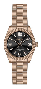 Band Material: Stainless Steel, Band Tone: Rose Gold, Band Width: 18MM, Band Length: 166MM, Crown Type: Push, Case Material: Stainless Steel, Case Tone: Rose Gold, Case Size [mm]: 36, Crystal Type: Mineral, Dial Material: Brass, Dial Color: Black .Purchasing these parts and having a non-authorized repair center open your watch voids all manufacturing warranties. Invicta cannot guarantee the quality standards of an altered timepiece, the standard 3-year limited warranty on Invicta timepieces shall be invalid if the timepiece is serviced at any time by an unauthorized repair center. This includes battery replacements, which must be done at an Invicta authorized repair center in order to maintain the eligibility of the warranty. Please follow the link below to learn more about Invicta's warranty.https://cdn.invictawatch.com/www/files/invicta-warranty-2018.pdf