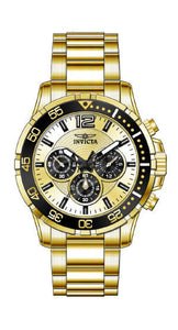 INVICTA Specialty Men 45mm Stainless Steel Gold Gold dial VD54 Quartz , Band Material: Stainless Steel, Band Tone: Gold, Band Size [mm]: 22, Band Length [mm]: 195, Buckle Type: Buckle , Crown Type:Push, Case Material:Stainless Steel, Case Tone:Gold, Case Size (mm):45, Case Back:Solid, Material of Hands:Metal, Color of Hands:Black, Crystal Type:Flame Fusion, Bezel Material:Stainless Steel,Aluminum, Dial Material:Metal, Dial Color:Gold, Dial Pattern:Sun-ray Finish .Purchasing these parts and having a non-authorized repair center open your watch voids all manufacturing warranties. Invicta cannot guarantee the quality standards of an altered timepiece, the standard 3-year limited warranty on Invicta timepieces shall be invalid if the timepiece is serviced at any time by an unauthorized repair center. This includes battery replacements, which must be done at an Invicta authorized repair center in order to maintain the eligibility of the warranty. Please follow the link below to learn more about Invicta's warranty.https://cdn.invictawatch.com/www/files/invicta-warranty-2018.pdf