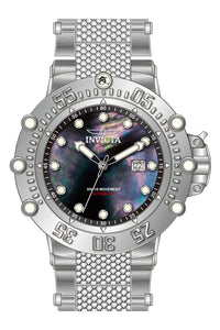 INVICTA Subaqua Men 52mm Stainless Steel Steel Black dial R150 Automatic , Band Material: Stainless Steel, Band Tone: Steel, Band Size [mm]: 27.3, Band Length [mm]: 230, Buckle Type: Fold over safety , Crown Type : Push, Case Material : Stainless Steel, Case Tone : Steel, Case Size (mm) : 52, Case Back : Exhibition, Material of Hands : Metal, Color of Hands : Silver,Luminous, Crystal Type : Flame Fusion, Bezel Material : Stainless Steel, Dial Material : Metal,Mother of Pearl,Oyster, Dial Color : Black .Purchasing these parts and having a non-authorized repair center open your watch voids all manufacturing warranties. Invicta cannot guarantee the quality standards of an altered timepiece, the standard 3-year limited warranty on Invicta timepieces shall be invalid if the timepiece is serviced at any time by an unauthorized repair center. This includes battery replacements, which must be done at an Invicta authorized repair center in order to maintain the eligibility of the warranty. Please follow the link below to learn more about Invicta's warranty.https://cdn.invictawatch.com/www/files/invicta-warranty-2018.pdf