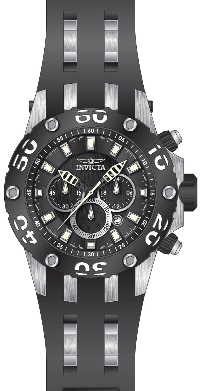 Band Material: Stainless Steel,Polyurethane, Band Tone: Steel,Black, Band Width: 32MM, Band Length: 210MM, Crown Type: Screw Down, Case Material: Stainless Steel, Case Tone: Black,Steel, Case Size [mm]: 51, Case Back: Solid, Material of Hands: Metal, Color of Hands: Luminous,Gunmetal, Crystal Type: Mineral, Bezel Material: Stainless Steel, Dial Material: Metal, Dial Color: Black .Purchasing these parts and having a non-authorized repair center open your watch voids all manufacturing warranties. Invicta cannot guarantee the quality standards of an altered timepiece, the standard 3-year limited warranty on Invicta timepieces shall be invalid if the timepiece is serviced at any time by an unauthorized repair center. This includes battery replacements, which must be done at an Invicta authorized repair center in order to maintain the eligibility of the warranty. Please follow the link below to learn more about Invicta's warranty.https://cdn.invictawatch.com/www/files/invicta-warranty-2018.pdf