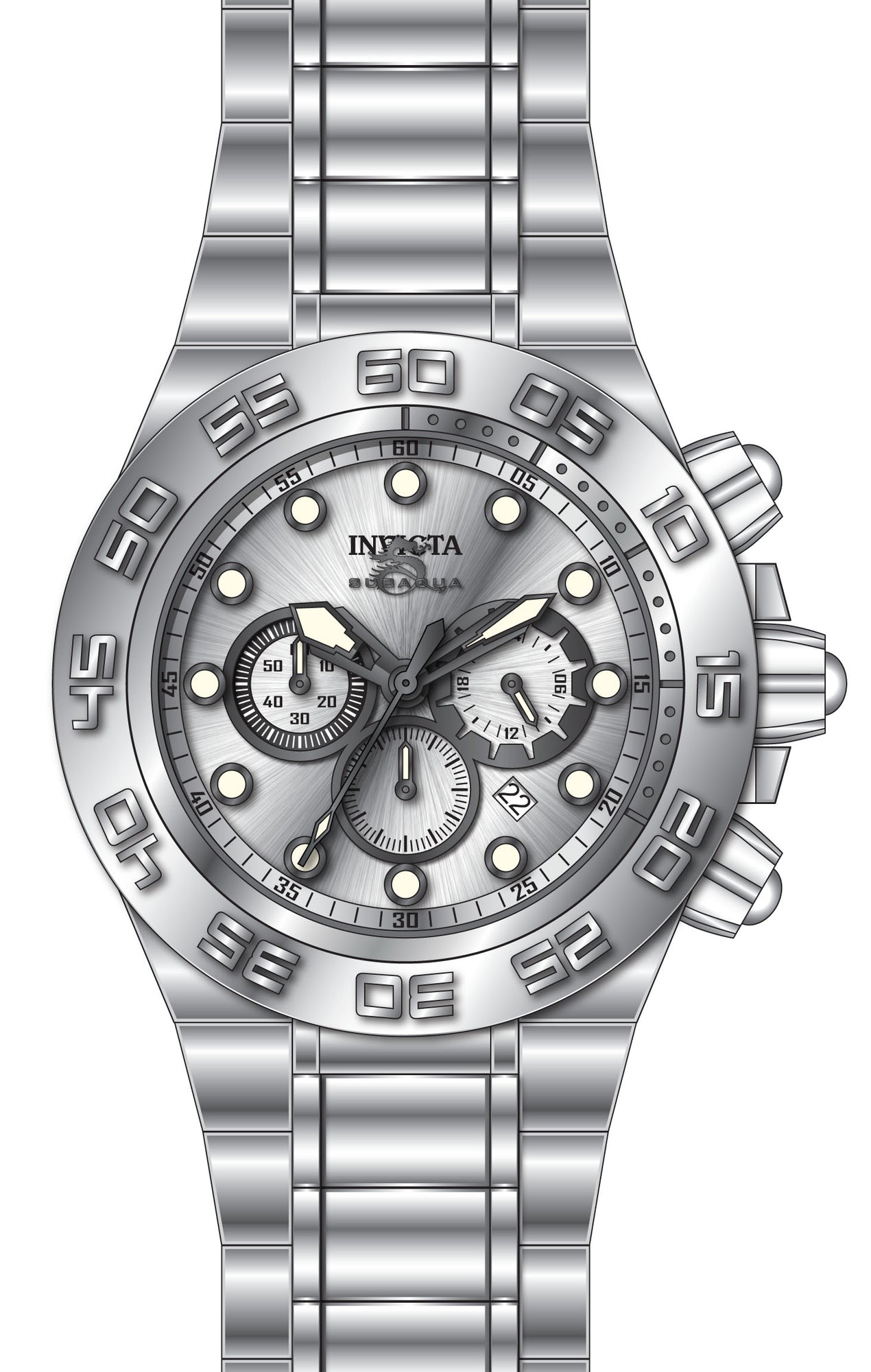 Band Material: Stainless Steel, Band Tone: Steel, Band Width: 32.5MM, Band Length: 210MM, Crown Type: Push, Case Material: Stainless Steel, Case Tone: Steel, Case Size [mm]: 50, Case Back: Solid, Material of Hands: Metal, Color of Hands: Black,Luminous,Gunmetal, Crystal Type: Mineral, Bezel Material: Stainless Steel, Dial Material: Metal, Dial Color: Silver, Dial Pattern: Sun-ray Finish .Purchasing these parts and having a non-authorized repair center open your watch voids all manufacturing warranties. Invicta cannot guarantee the quality standards of an altered timepiece, the standard 3-year limited warranty on Invicta timepieces shall be invalid if the timepiece is serviced at any time by an unauthorized repair center. This includes battery replacements, which must be done at an Invicta authorized repair center in order to maintain the eligibility of the warranty. Please follow the link below to learn more about Invicta's warranty.https://cdn.invictawatch.com/www/files/invicta-warranty-2018.pdf
