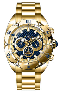 INVICTA Venom Men 50mm Stainless Steel Gold Blue+Gold dial VD54 Quartz , Band Material: Stainless Steel, Band Tone: Gold, Band Size [mm]: 26, Band Length [mm]: 182, Buckle Type: Fold over safety , Crown Type : Push, Case Material : Stainless Steel, Case Tone : Gold, Case Size (mm) : 50, Case Back : Solid, Material of Hands : Metal, Color of Hands : Gold, Crystal Type : Flame Fusion, Bezel Material : Stainless Steel, Dial Material : Metal,Glass Fiber, Dial Color : Blue,Gold, Dial Pattern : Sun-ray Finish .Purchasing these parts and having a non-authorized repair center open your watch voids all manufacturing warranties. Invicta cannot guarantee the quality standards of an altered timepiece, the standard 3-year limited warranty on Invicta timepieces shall be invalid if the timepiece is serviced at any time by an unauthorized repair center. This includes battery replacements, which must be done at an Invicta authorized repair center in order to maintain the eligibility of the warranty. Please follow the link below to learn more about Invicta's warranty.https://cdn.invictawatch.com/www/files/invicta-warranty-2018.pdf