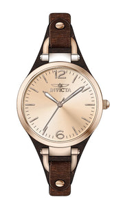 Band Material: Leather, Band Tone: Brown, Band Width: 8.0MM, Band Length: 240MM, Crown Type: Push, Case Material: Stainless Steel, Case Tone: Rose Gold, Case Size [mm]: 32, Case Back: Solid, Material of Hands: Brass, Color of Hands: Rose Gold,Luminous, Crystal Type: Mineral, Bezel Material: None, Dial Material: Brass, Dial Color: Rose Gold, Dial Pattern: CD Pattern .Purchasing these parts and having a non-authorized repair center open your watch voids all manufacturing warranties. Invicta cannot guarantee the quality standards of an altered timepiece, the standard 3-year limited warranty on Invicta timepieces shall be invalid if the timepiece is serviced at any time by an unauthorized repair center. This includes battery replacements, which must be done at an Invicta authorized repair center in order to maintain the eligibility of the warranty. Please follow the link below to learn more about Invicta's warranty.https://cdn.invictawatch.com/www/files/invicta-warranty-2018.pdf