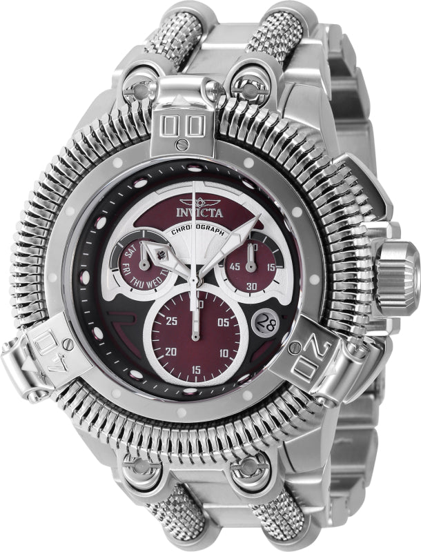 Band Material: Stainless Steel, Band Tone: Steel, Band Width: 33.50MM, Band Length: 210MM, Crown Type: Screw Down, Case Material: Stainless Steel, Case Tone: Steel, Case Size [mm]: 50.0, Color of Hands: Luminous, Silver, Crystal Type: Mineral, Bezel Material: Stainless Steel, Dial Material: Metal, Dial Color: Burgundy, Silver, Black .Purchasing these parts and having a non-authorized repair center open your watch voids all manufacturing warranties. Invicta cannot guarantee the quality standards of an altered timepiece, the standard 3-year limited warranty on Invicta timepieces shall be invalid if the timepiece is serviced at any time by an unauthorized repair center. This includes battery replacements, which must be done at an Invicta authorized repair center in order to maintain the eligibility of the warranty. Please follow the link below to learn more about Invicta's warranty.https://cdn.invictawatch.com/www/files/invicta-warranty-2018.pdf