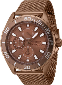 Band Material: Stainless Steel, Band Tone: Brown, Band Width: 24MM, Band Length: 190MM, Crown Type: Push, Case Material: Stainless Steel, Case Tone: Bronze, Case Size [mm]: 46, Color of Hands: Luminous, Brown, Crystal Type: Flame Fusion, Bezel Material: Aluminum, Dial Material: Brass, Dial Color: Brown .Purchasing these parts and having a non-authorized repair center open your watch voids all manufacturing warranties. Invicta cannot guarantee the quality standards of an altered timepiece, the standard 3-year limited warranty on Invicta timepieces shall be invalid if the timepiece is serviced at any time by an unauthorized repair center. This includes battery replacements, which must be done at an Invicta authorized repair center in order to maintain the eligibility of the warranty. Please follow the link below to learn more about Invicta's warranty.https://cdn.invictawatch.com/www/files/invicta-warranty-2018.pdf