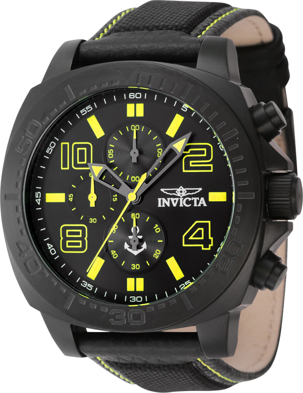 Band Material: Nylon, Band Tone: Black, Band Width: 22MM, Band Length: 210MM, Crown Type: Push, Case Material: Stainless Steel, Case Tone: Black, Case Size [mm]: 46, Color of Hands: Gunmetal, Yellow, Crystal Type: Flame Fusion, Bezel Material: None, Dial Material: Brass, Dial Color: Black .Purchasing these parts and having a non-authorized repair center open your watch voids all manufacturing warranties. Invicta cannot guarantee the quality standards of an altered timepiece, the standard 3-year limited warranty on Invicta timepieces shall be invalid if the timepiece is serviced at any time by an unauthorized repair center. This includes battery replacements, which must be done at an Invicta authorized repair center in order to maintain the eligibility of the warranty. Please follow the link below to learn more about Invicta's warranty.https://cdn.invictawatch.com/www/files/invicta-warranty-2018.pdf