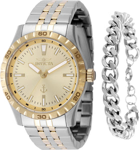 Band Material: Stainless Steel, Band Tone: Gold, Steel, Band Width: 22MM, Band Length: 180MM, Crown Type: Push, Case Material: Stainless Steel, Case Tone: Steel, Gold, Case Size [mm]: 42, Color of Hands: Luminous, Gold, Crystal Type: Mineral, Bezel Material: None, Dial Material: Brass, Dial Color: Gold .Purchasing these parts and having a non-authorized repair center open your watch voids all manufacturing warranties. Invicta cannot guarantee the quality standards of an altered timepiece, the standard 3-year limited warranty on Invicta timepieces shall be invalid if the timepiece is serviced at any time by an unauthorized repair center. This includes battery replacements, which must be done at an Invicta authorized repair center in order to maintain the eligibility of the warranty. Please follow the link below to learn more about Invicta's warranty.https://cdn.invictawatch.com/www/files/invicta-warranty-2018.pdf