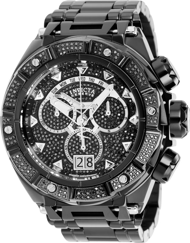 Band Material: Stainless Steel, Band Tone: Black, Steel, Band Width: 32MM, Band Length: 210MM, Crown Type: Screw Down, Case Material: Diamond, Stainless Steel, Case Tone: Steel, Black, Case Size [mm]: 52.7, Color of Hands: Luminous, Silver, Crystal Type: Flame Fusion, Bezel Material: Diamond, Stainless Steel, Dial Material: Pave, Metal, Dial Color: Silver, Black .Purchasing these parts and having a non-authorized repair center open your watch voids all manufacturing warranties. Invicta cannot guarantee the quality standards of an altered timepiece, the standard 3-year limited warranty on Invicta timepieces shall be invalid if the timepiece is serviced at any time by an unauthorized repair center. This includes battery replacements, which must be done at an Invicta authorized repair center in order to maintain the eligibility of the warranty. Please follow the link below to learn more about Invicta's warranty.https://cdn.invictawatch.com/www/files/invicta-warranty-2018.pdf
